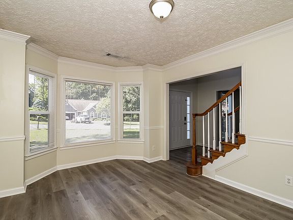 Office areaCovered patio in backyardFormal dining areaLarge kitchen with pantrySeparate media areaHigh trey ceilings
