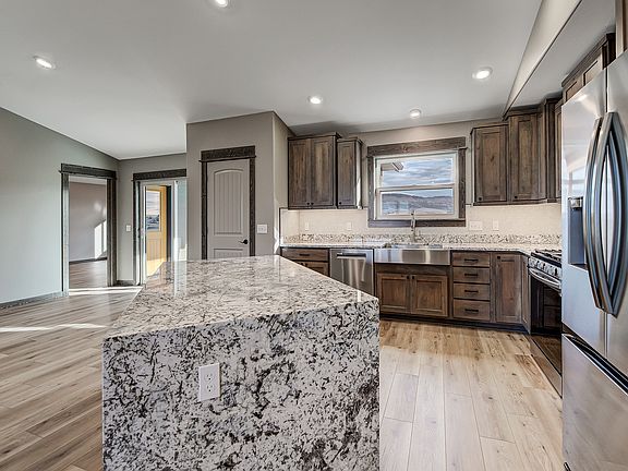 Beautiful finishes throughout in this 2,256 sq ft single-level home nestled in Wheat Ridge Estates. Boasting 4 bedrooms and 2 bathrooms on a vast 2-acre lot, immerse yourself in the breathtaking 360-degree views that embrace Montana's mountains, city lights, and the expansive Big Sky. Enter into an inviting space where the kitchen effortlessly blends with the dining and living areas, creating a welcoming open-concept layout. The kitchen features a large island with custom granite waterfall, tiled backsplash, stainless steel appliances with gas range, and large pantry. Unwind by the cozy fireplace in the spacious living area or retreat to the oversized covered patio, perfect for relaxation and entertainment. The ensuite features vaulted ceilings, a walk-in closet, and tiled bathroom with walk-in shower. Convenience meets leisure with proximity to Canyon Ferry Lake, the airport, and Highway 12, ensuring easy access to recreational adventures and city amenities.