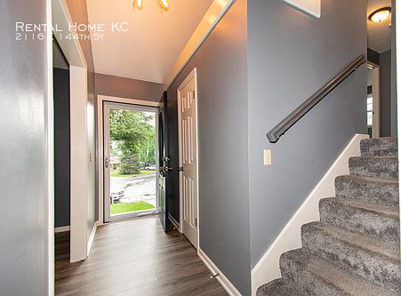 Just-remodeled with new paint, flooring, countertops, appliances, cabinets, and more to make this an exceptionally fresh and clean home. The main level features a 2-story entry hall, living room, formal dining, and kitchen with eat-in space. The kitchen has gorgeouos granite countertops, tile backsplash, and new appliances, including the refrigerator. The middle level has the master suite with dual closets and upgraded bath, plus two more oversize bedrooms and the hall bath which also has new countertop and tile. A big dormer-type 4th bedroom is on the top level. There is also a spacious family room with fireplace (decorative only), built-in bookshelves, and walkout to the patio. The large unfinished basement provides lots of storage and/or a great play area. Located at the end of a cul-de-sac with a huge level fenced back yard. Just two blocks from Mid America Nazarene University and near Garmin headquarters and Olathe Medical Center. Plenty of dining and retail within a mile to the north and south. SHOWING STATUS: VACANT AVAILABLE: July 1st LEASE TERM: One or more full years PETS: Up to 2, under 60lbs and over 1 year old FENCED YARD: Yes ROOMS: Living Room....................16 x 12 Dining Room....................14 x 9 Kitchen..........................14 x 12 Master Bedroom...............16 x 12 Bedroom 2......................15 x 11 Bedroom 3......................15 x 11 Bedroom 4......................15 x 13 Family Room....................17 x 14 Unfinished Basement..........23 x 20 Garage...........................23 x 20 Application Fee: $35/Adul Non-Refundaable
