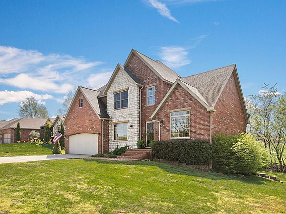 The wait is over, this house has EVERYTHING you are looking for!! Check out all the upgrades in this charming home! The beautiful entry hall and large vaulted ceilings are just the beginning of the added touches you will find. The main floor features: custom kitchen cabinets with granite, upgraded brick accents and double oven, a bedroom with ensuite bath, an office and formal dining room with brick floors. The upstairs master also has tall vaulted ceilings and a large master bath with garden tub and travertine tile. A Jack-and-Jill bath joins the 3rd and 4th bedrooms. If that's not enough, the basement has a non-conforming bedroom and 3rd car garage. It makes a perfect family room or mother-in-law suite with it's own entrance. New roof, new HVAC upstairs, dual zoned heat and air, new dishwasher, newer upgraded carpet. This property is quiet and private, sitting at the end of a cul de sac and has a wet-weather creek and overlooking farm land. Great neighborhood with a pool, fantastic schools and close to all the shopping and fun around Ozark!! You don't want to miss this opportunity!