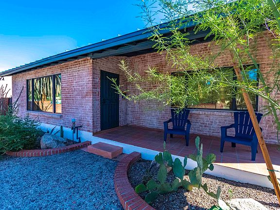 The best of both worlds: a historical brick house that has recently been refurbished to the highest standard. Immaculately kept, this home is move in ready. Main house features 3 large ensuite bedrooms, two with engineered wood floors and walk-in closets. Baths have custom-made wood cabinets, granite counter-tops, Hansgrohe bathroom fixtures, and travertine, slate or saltillo tiles. The new open kitchen plan with custom-made wood cabinets. granite counters and Bosch appliances, has lots of natural light from large picture windows. A large living room, maintains the original exposed wood ceiling and is amply sized. The home also has a new insulated metal roof and new double glazed Kolbe aluminum-clad wood tilt-and-turn windows. (continued) The home has been rewired and brought to current code and has newer HVAC as well. All new interior wooden doors throughout, plus a darling 1/2 bathroom addition and separate walk in laundry room with over-sized washer and dryer included. An excellent location, in the heart of Historic Blenman-Elm, and within walking distance to Banner Hospital and the quaint Arizona Inn, and just a short drive to UofA, many shops and restaurants. This very quiet neighborhood has resident-only parking on the street, yet this home also features an over-sized detached 2-car garage and a covered carport for 2 or 3 cars, all behind a secure electronic fence. The large detached studio guest house (potentially with a separate entrance) has a kitchenette and 3/4 bath and a new shingle roof at both the guest and covered parking areas. A large swimming pool (re-plastered and with new equipment) sits between the main and guest home with lovely patio and low maintenance landscaped areas, including an electrical awning for additional shade. The front of the home has a spacious circular drive to accommodate guest parking for at least 3 cars. This home is truly one of a kind in this convenient Historic neighborhood.