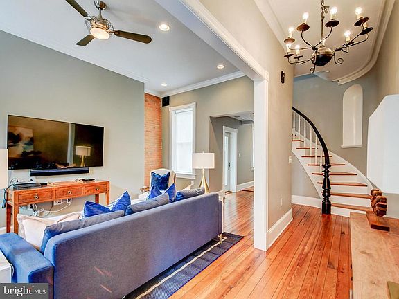 You will be more than charmed by this elegant, grand modern home in the heart of Butchers Hill. At just over 3,000 square feet, this home has a spacious entertainer's gourmet kitchen that opens to a brick patio with pergola. The kitchen includes an oversized island PLUS peninsula with gorgeous stone countertops and seating for 8, a gas range, and a large pantry. Large dining area open to the kitchen. Separate office space and powder room on the main level. An elegant living room with soaring ceilings, beautiful moldings and a grand original spiral staircase complete the first floor. Large modern master suite with an ensuite bathroom has an oversized walk-in shower and separate soaking tub. En suite laundry area plus custom built-in closets and a private balcony are all part of this luxurious master suite. 2 additional light filled bedrooms with stylish ensuite full baths. Large windows in every room. 2 tier roof deck with stunning water and city views. Hardwood floors throughout. All new systems and roof in 2009. Zoned heat/air. 1.5 blocks to Patterson Park, walking distance to JHH, Fells Point, Canton, University shuttles, bus lines and the water taxi. 2 great new restaurants in the neighborhood (Charm*d and La Barrita). One year leased parking on Duncan Street included with a ratified contract. Large basement provides great storage.