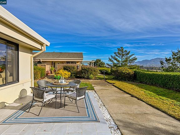 Gorgeous custom expanded San Franciscan model. End unit on level lot with fabulous VIEWS of Mt. Diablo. Two bedrooms, 2 bathrooms, large living room with picture windows of views. Kitchen with full center island, stainless appliances, quartz countertops and marble backsplash. Additional room with sliding doors to side of home; can be dining room or den/office. Full size washer and dryer. Engineered hardwood floors, 3 skylights and all newer Silhouettes on dual pane windows. Expanded front patio/sitting area and 2 lemon trees on side of home. This is a MUST SEE.