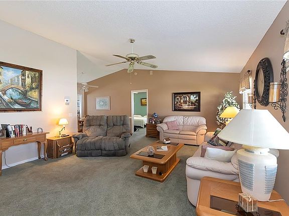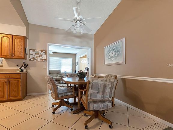 You'll want to see this charming home in a very active adult community. Play golf all day, sun by the pool or attend the many activities offered in the community. You enter a light and very spacious living room. Around the corner from is a newer kitchen with beautiful cupboards and solid counters. White appliances, glass top stove, ceramic tile floors and even a solar tube to add to the light and bright! Two good size bedrooms in a split design allows for privacy when you have company. This house doesn't have one bonus room - it has TWO! They are both very light and bright and could be a combination of things.....family room, office, craft room (lots of sunlight for you painters/quilters/crafters), one could even be converted to another bedroom! Step outside to a very large and private Florida room. The roof is about 3 years old, A.C. 9-10 years old, windows are double pane energy efficient windows. Don't miss out on the opportunity to move into this move-in ready home!