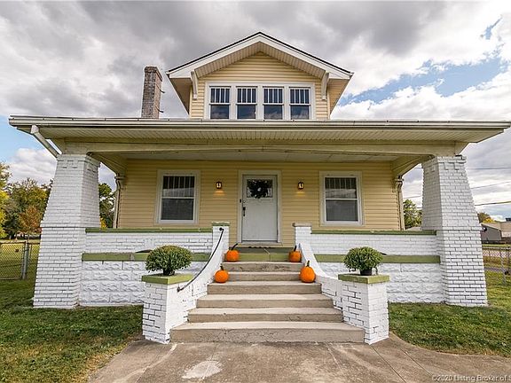 Be ready to FALL in love with this charming 5 bedroom bungalow. The possibilities for this property are endless. You will amazed by the amount of of space in this home. Recent renovations include a new roof, new gutters, new flooring, updated kitchen, two new large windows, fresh paint, and 2 sparkling new full bathrooms. The main level of this home features a beautiful kitchen, a quaint dining nook that would be perfect for banquette seating, a large formal dining room, a spacious living room with built-in bookshelves surrounding a fireplace, 2 bedrooms, and a full bathroom. The 2nd floor features include a large bonus area, 3 additional bedrooms, and a full bathroom. In the full, unfinished basement, you will find plenty of storage for your goodies, a workbench area for your hobbies, a laundry area and a convenient walk-up/outside entrance. The outside of this home is equally as fabulous with a detached 2-car garage, paved drive-way, fenced-in yard with drive-way gate, a charming pergola area, plenty of room for that flower garden, a back porch, and a large front porch to enjoy your morning coffee. This home is full of charm and a must-see. Conveniently located in Jeffersonville and very easy access to Louisville. Schedule your private showing today. Sq ft & rm sz approx.
