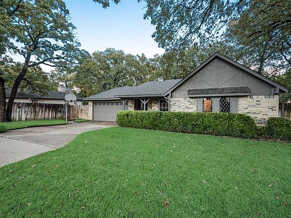 There is no shortage of entertaining opportunities just around the corner from this spacious 3-2! Drive to Globe Life Field, AT&T Stadium, Texas Live, Six Flags Over Texas and Hurricane Harbor in less than ten minutes! Enjoy the numerous dining and entertainment options that Texas Live entertainment district offers! The curb appeal of this cool gray home catches your eye immediately. Huge back yard is shaded by mature trees. The living area, with vaulted ceilings and a floor-to-ceiling brick fireplace, provides an open space perfect for hosting. Kitchen comes with a large breakfast room and bar, plus tons of natural light. Enjoy the peace of mind that comes with having a recently replaced roof.