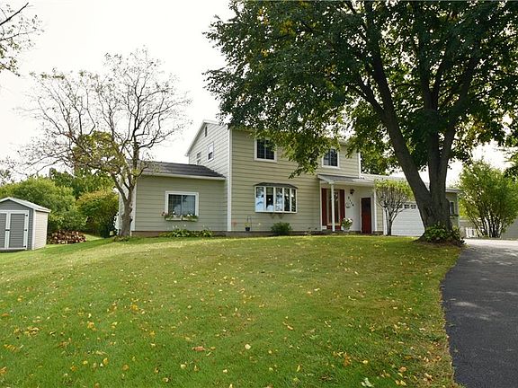 Fantastic 4 bedroom colonial in Henrietta NY! Beautiful bright kitchen with white cabinets and granite counter tops include the stainless appliances. Family room area with wood burning fireplace is a great space to gather or relax. The extra wide staircase leads to four bedrooms upstairs with updated bath. Downstairs the partially finished basement offers a great recreation room or office space as well as newer furnace and central air. Spacious circular driveway leads to the 2 car garage. The back yard offers a stamped concrete patio with some privacy fencing, a great opportunity to make it a impressive space. Conveniently located with access to everything Henrietta has to offer, close to shopping and expressways. Much to see!