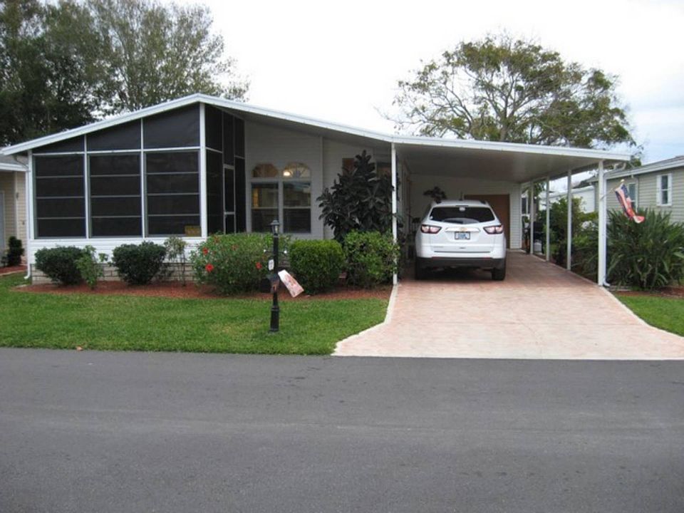 SHARP! This great home is located in beautiful Four Lakes, a 55+ Gated Retirement Community with homes on lot leased land. Here you own the home and not the land. You pay a monthly rent for the land and it allows you and your guest to use the amenities of the community. The monthly lot fee on this home is $612.00 This lovely, well-maintained and beautifully decorated home features two bedrooms, two baths, dining room, eat-in kitchen, laundry room with washer and dryer, tape and textured walls and bull nosed corners. The spacious master bedroom has a walk-in closet (as does the second bedroom) and the master bath has updated walk-in shower, his and her sinks, and high countertops with plenty of storage space. You will love relaxing in the front Florida room with vinyl windows (screening and vinyl windows recently redone), and peek-a-boo view of the lake and golf course! The long deco driveway leads to a 14' X 12' golf cart garage...golf cart is included. Actually, everything you will need to move right in is included...furniture, televisions (even the large screen ones), all appliances, dishes, pots and pans, silverware, K-cup coffee maker, toaster, linens, etc., etc. It even comes with the barbeque and men's golf clubs! Everything about this home is SHARP...and it is priced to sell!