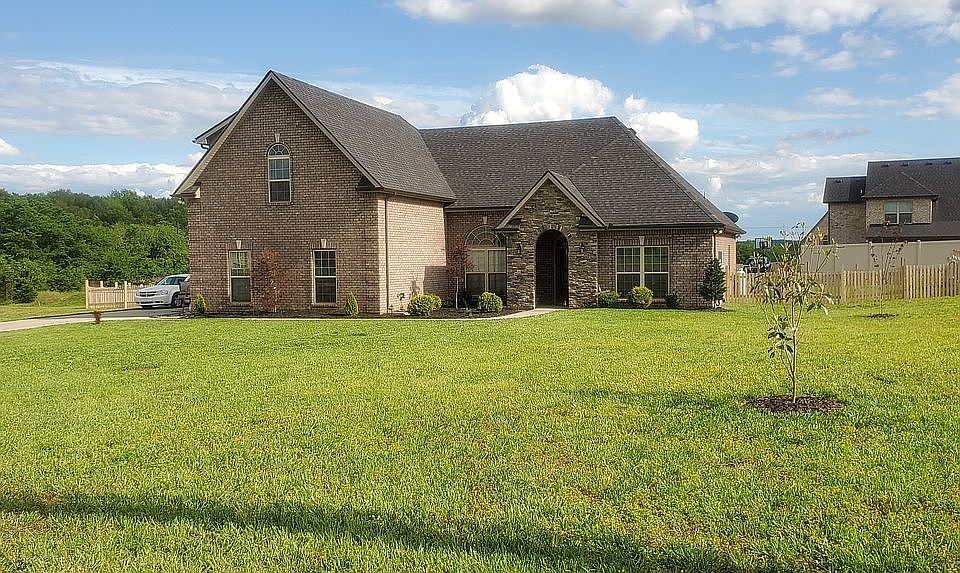 1.5 Story brick home with stone accent on front facade. 3 bedroom with large bonus room above garage including a 3rd full bath, walk-in closet and walk-in attic access. Real hardwood in main living area and kitchen, tile in all wet areas, granite in bathrooms and kitchen with custom cabinets. Large island with raised bar sitting area. Great natural light throughout main living area with plenty windows. Custom crown molding throughout house including wide open main living area floor plant with 9-12ft ceilings. 9 ft ceilings minimum throughout home with custom cathedral ceiling in master. Custom tiled walk in shower and jacuzzis tub plus his and her sinks. Covered back porch with extended concrete patio. Cul-de-sac lot in beautiful quiet Lascassas.