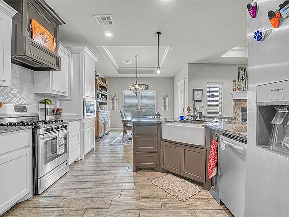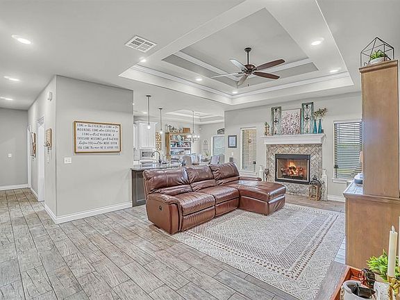 This is a 4-bedroom split plan, 2 bath 1 dining plus a 3-car garage. The kitchen comes with a walk-in pantry and is equipped with all SS appliances to include refrigerator, gas stove, dishwasher and disposal AND a wraparound kitchen bar that is open to the dining and living areas. The living room has a fireplace with gas logs and canned lighting. The master bath has a soaking tub, separate shower, double sinks and a HUGE closet!!! The over-sized laundry room comes with a sink, granite counters and a hanging rod. Custom wood valances over front & back doors. This property too has the 2 x 6 wall construction, 50-gallon water tank, vinyl tilt-in windows and super low electric bills!