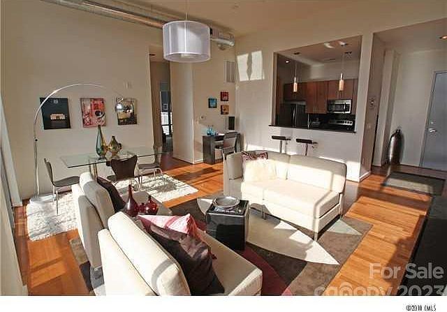 Ideal Plaza Midwood location! Spacious second floor 2BR Condo has 12' Ceilings that give this unit a WOW factor. More than 20 restaurants and bars within .25 miles, walk and enjoy some of the best food and night life in Charlotte. Beautiful kitchen with stainless appliances and granite countertops opens into a large living room with tall sliding glass doors that face the natural area behind the property. Large covered balcony great for unwinding at the end of your day. The unit was bult in 2008 and the HVAC system replaced in 2020. Stacked Washer and Dryer and refrigerator in unit convey. This unit comes with one of only 5 storage spaces in the building!