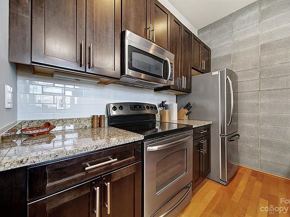 Welcome to condo living in the heart of Plaza Midwood! This 1 Bed 1 Bath unit offers an industrial, contemporary, artsy feel. Gorgeous hardwood floors throughout, 12' ceilings, laundry room, and reserved off-street parking. The kitchen features granite countertops, beautiful cabinetry, and stainless steel appliances. The private patio is perfect for entertaining or relaxing. HOA covers water, sewer, exterior landscaping and pest control. Conveniently located within minutes of Supperland, Legion Brewing, Whiskey Warehouse, Undercurrent Coffee, Workman's Friend, Milkbread, Thomas Street Tavern and much more. There is a trolley stop near Moo & Brew and there is a proposed Light rail Silver Line down Central Avenue.