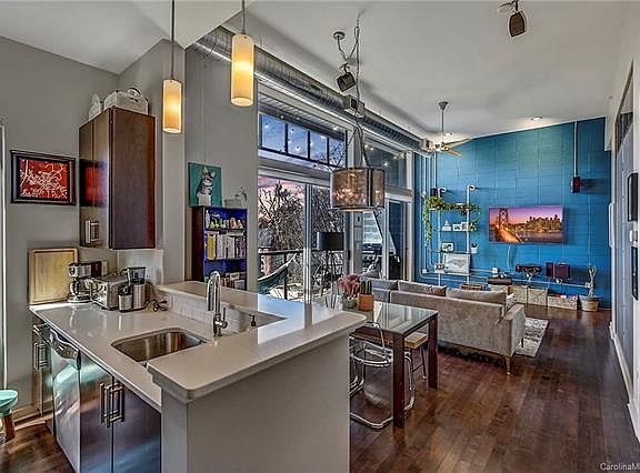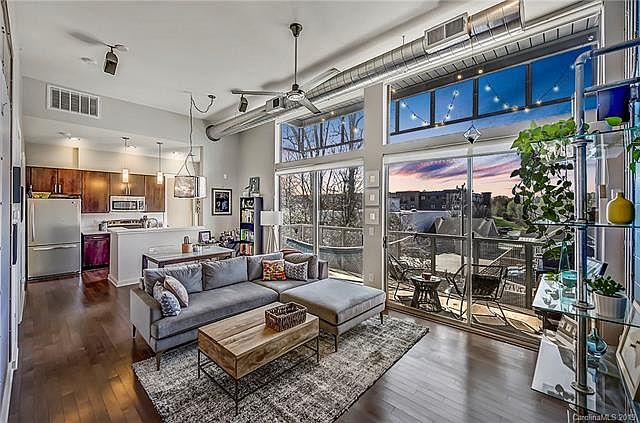Location perfected! Situated in the energy of Plaza Midwood, you'll be strolling to a collection of more than 30 restaurants, funky shops, bakeries and lifestyle options all within a few blocks. With clean lines and modern paint scheme, you'll love the extended ceiling height and industrial styling of the space. Exposed ducts, hardwood floors, block accent wall complete the details. Massive floor to ceiling windows with double sliding doors to bring the outdoors - in. Spill out to the covered terrace for a refreshing afternoon in the sun. Striking kitchen with dark cabinets and contrasting white subway tile backsplash, white quartz c-tops and stainless appliances. Both bedrooms feature new carpet and ensuite baths. Highly desired unit on the back of the building enhances privacy. There's more - new HVAC (2016) surround sound and designer lighting. Harris Teeter is directly across the street and will simplify your daily life. Showings begin Sat April 6th at 10:00AM.