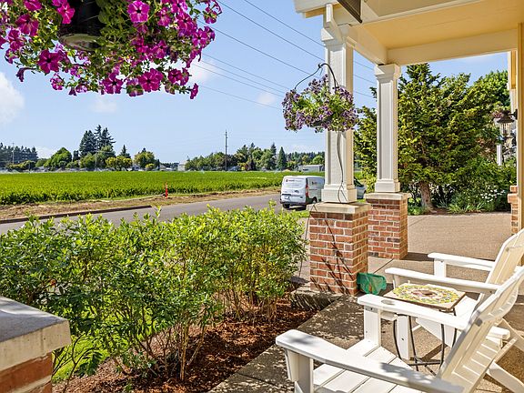 Major Price Reduction!!! Lovingly maintained single-level home 4 blocks to Willamette Valley Country Club and 1.5 miles to downtown Canby. Experience the tranquility of country living across the street from Montecucco Farms, while enjoying the convenience of living close to town. This home features an easy-flow floorplan with 3 bedrooms and an office. The open layout includes 9 ft. ceilings, wide hallways, and hardwood floors. Additional features such as central vacuum system, plantation shutters and an EV charger in the garage add to the home's appeal. The kitchen boasts a large island, sleek stainless-steel appliances, a pantry, instant hot water, and pullout shelves. It seamlessly opens to the family room and dinette, creating an inviting space for gatherings. Step into your private backyard oasis to enjoy beautiful gardens, outdoor sitting areas, and a hot tub. The irrigation system and drip lines make garden maintenance a breeze. The blueberry bushes provide a plentiful harvest, and the sunsets are amazing. Perfect for entertainment, this home combines elegance and functionality for comfortable living.