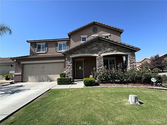 Experience the essence of luxury and elegance in this magnificent home located in the Heart of Delano on a corner Lot!!!. Solar panels included!! This immaculate home features Four bedrooms & two and a half bathrooms. The lovely and efficient floor plan greets visitors with a large Formal Living Room entrance leading to the spacious family room and kitchen area. Next to the family area, there is also a large space that could be used as an office. Upstairs has one Large Den/Office. It has upgraded Elegant ceiling fans. This Elegant Residence has a living space of 2,407 sqft and a large lot size of 5,663 sqft. Includes a Two-car Garage and a spacious driveway; Large formal living room and dining area with an Elegant " Venitian Plaster " Wall paint and two-floor ceilings, fresh-and-neutral-colored walls throughout the home. Large Center island with a dual sink, and lots of cabinetry space. The kitchen is equipped with plenty of storage and modern stainless steel appliances. This Gorgeous home has a large primary suite that includes a large en-suite bathroom with a separate shower and soaking tub. Large walking closet. The Residence has Beautiful Wood laminate and carpet that looks like new. For convenience, there is also a spacious upstairs laundry room. Enjoy this Beautiful Community with lovely walkways around the Beautiful Veneto Park.