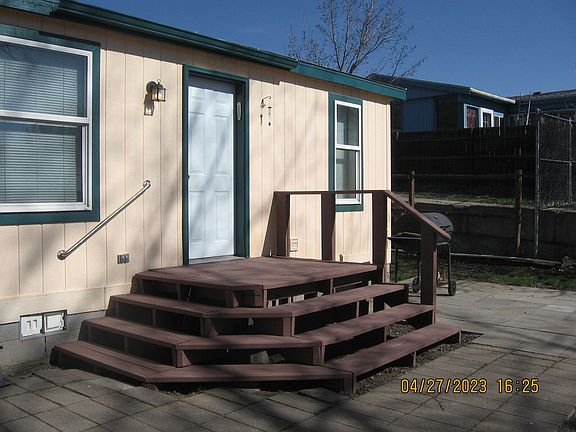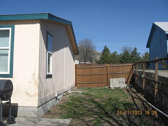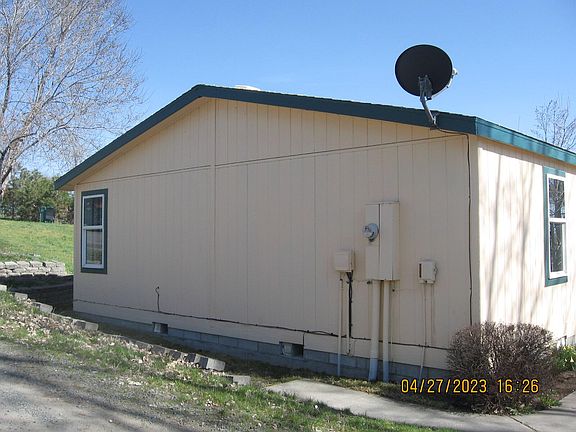 Nice doublewide manufactured home in excellent condition on a full foundation! Home sits back from the street on a large .50+/- acre lot with Enterprise Irrigation. Newly-stained cute deck outside on back entrance. Home is Super Good Cents so has energy efficient upgrades. The exterior was painted approx. 4 years ago. Home has good sized bedrooms and a large living room/great room area with vaulted ceilings and a pellet stove. The seller is having a complete remodel done on the guest bathroom - new flooring, tub, tub surround, sink, vanity and all hardware/fixtures! It's going to be beautiful and should be completed by mid-May. The primary bedroom has its own bath with a soaking tub & shower and brand new flooring too. There is a generous-sized shed/workshop in the back and a large pasture area where you could build your garage or shop and provides RV and parking for all your toys!