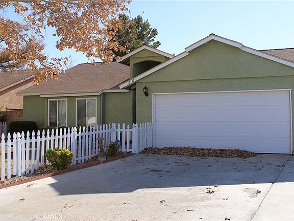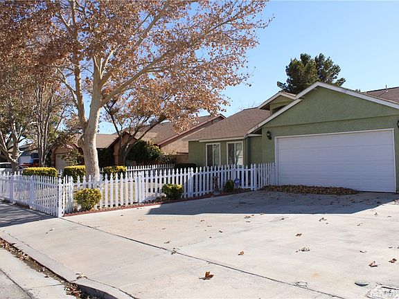 This is a great home with a white picket fence in Rosamond. As you walk in you will see the custom tile work on the entryway floor. Directly ahead is the open living room with vaulted ceiling, fireplace, and a built in bar. The home has central air and heat but there is also an evaporative cooler in the living room window. The living room opens to the large dining area which opens up to the kitchen. The kitchen features a stainless steel stove and oven, ample cabinet space and a newer dishwasher. There are French doors leading outside through the dining room. Conveniently the indoor laundry room is off of the kitchen and provides access to the 2-car garage. All 3 bedrooms are located on the opposite side of the house. There are 2 guest bedrooms facing the front of the home and have ceiling fans to help keep your energy costs down. The guest bathroom features a stand alone vanity sink and a tub/shower combo with beautiful tiled walls. Across the hall is the master bedroom with vaulted ceiling, 2 separate closets, ceiling fan, and French doors leading to the backyard as well. The master bathroom has dual sinks and a tub/shower combo. There are wood laminate and tile floors throughout the home. The inside of the home has been newly painted with the exception of 2 of the bedrooms. The backyard has space to make it what you wish. There is 220V set up if you'd like to add a spa. The workshop in the back is great for storage or being creative. The driveway is extended and there is potential room behind the gate for a small trailer or boat. There is easy access to the highway for your daily commute and is in close proximity to shops and restaurants.