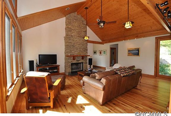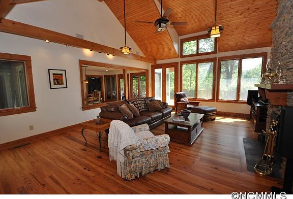 --Craftsman built Arts and Crafts home on the French Broad River just outside the town of Hot Springs. Easy river access for kayaking & tubing, adjoining National Forest for privacy. Beautiful pastures for your horses or livestock. 4 BR 2.5 BA, fireplace, open floor plan. spacious master suite with whirlpool tub, Jotel wood stove in kitchen. Great room. screen porch, decks, patio and courtyard. Incredible well water. Tranquil setting.
