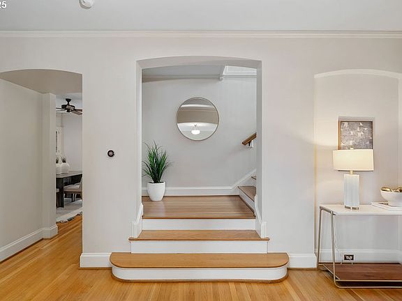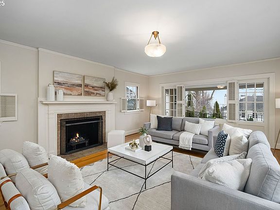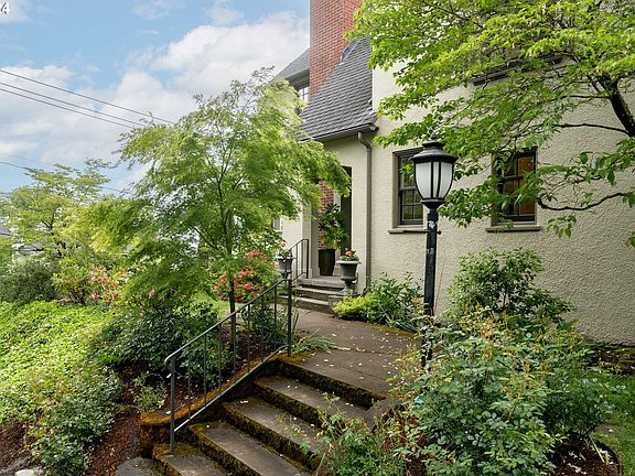 This classic 1923 English Arts & Crafts style home sits in the heart of 'The Grid' in Portland Heights, one of Portland's most coveted neighborhoods and just blocks from Ainsworth elementary school. The home has been beautifully maintained by the current owners - focusing on items that so many buyers prioritize in this day and age. The highest-efficiency Trane Heat pump allowing for air conditioning, new Pella windows, and new PEX piping throughout the entire house replacing the antiquated plumbing are just a few of the upgrades. Each level of this 4315 SF home offers spacious rooms. On the main floor the light-filled living room with its wood burning fireplace opens to a covered porch with city views - ideal for entertaining. The open kitchen / dining room overlooks the large flat yard with its custom curved deck and raised beds. On the upper floor are three generous bedrooms with the primary providing views of the city. The lower level has an additional bedroom and full bath as well as a large, finished area perfect for indoor play on a rainy Portland day. [Home Energy Score = 1. HES Report at https://rpt.greenbuildingregistry.com/hes/OR10229332]