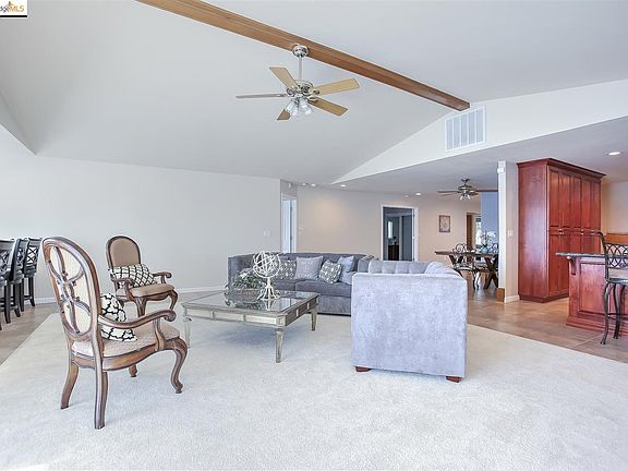 SINGLE STORY home in the heart of Discovery Bay, Large yard. As you enter the front door you will find the warmth and style, the property offers approx. 3200 sq. ft. on single story with 4 bedrooms, 3 full bathrooms and 3 car garage. Jr suite bedroom with full bath. The formal living room offers high ceilings and a elegant cozy fireplace, a formal dining room for entertaining. the views open to the backyard on the delta. The gourmet kitchen offers gorgeous granite counter tops and double ovens. Also included in this fabulous kitchen is a large island. The breakfast nook is open and bright with large windows to enjoy the natural lighting and views of the water. The master suite features views and access to the water, 2 generous walk-in closets with his and hers own baths, true dream, The tile and wood flooring throughout the property gives pure elegance. This home has been fully done and beyond upgraded. This home is a first class single story with lots of space for Delta living.