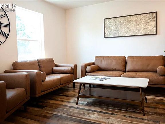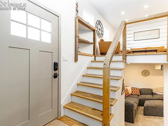Welcome to this beautifully remodeled 3-bedroom, 2-bathroom home nestled in the heart of Colorado Springs' desirable Rockrimmon neighborhood. This charming retreat perfectly combines rustic charm with mid-century modern flair, featuring high-end finishes throughout. The kitchen boasts full inlay custom cabinets and quartz countertops, while the bathrooms showcase custom tile work, including a double vanity in the master suite. The master bedroom also offers a spacious walk-in closet and custom built-ins. Downstairs you'll find 2 additional bedrooms, with a fun built in bunk bed in one of the rooms as well as a gorgeous bathroom, laundry room and rec room. Enjoy breathtaking mountain views from the serene outdoor space, perfect for relaxation. The home’s location is ideal for outdoor enthusiasts, with close proximity to scenic hiking trails. The spacious living area, filled with natural light, provides a welcoming atmosphere for anyone. Conveniently located near local attractions, parks, and dining, this home offers both luxury and convenience for a truly memorable living experience.