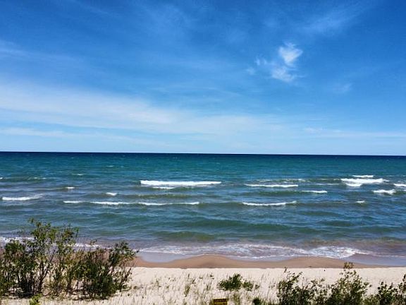 Custom Built in 2003, this one has it all. Two and a half story great room with panoramic views of Lake Huron and sits on a very private drive. Home boasts 5 bedrooms all with stunning views of nature's best. Large "chefs dream" which overlooks great room with towering stone fireplace. There is a sprawling 1st floor master suite with private bath with library/den/5th bedroom across foyer. Exterior is maintenance free wood grain composite (rot proof) siding along with a composite deck overlooking Lake and 100 feet of one of Hurons finest beaches. Be sure to view the virtual tour!