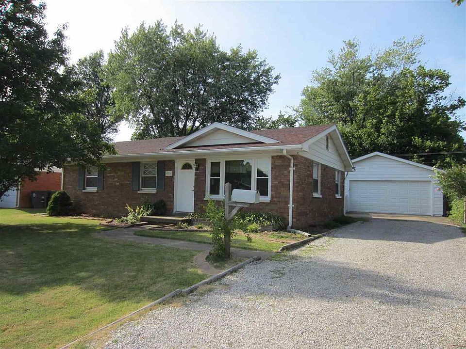 Move right in to this all-brick ranch with 3 Bedrooms, 2 Full Baths, large 2 car garage, fenced yard, fireplace, living room and family room, updated Kitchen, and Office! Hardwood flooring is throughout most of the home except for wood laminate in the Kitchen. Large Living Room with new picture window, and wide opening to the updated Kitchen that has white cabinets and marble countertops. The addition in the back of the home has a spacious Family Room with pretty wood-burning fireplace, maple hardwood floor, and double door to the patio; a 2nd Full Bath, and a useful room in the back corner that would make an ideal office, den, or hobby room. The 24x26 2.5 Car Garage is heated, has a newer garage door with exterior keypad, cabinets and workspace, and all the walls are pegboard to easily store tools and equipment! Updates include: dimensional roof on house (2008), upgraded interior trim, kitchen, furnace (2013), C/A (2007), and more! This nice home is in a convenient neighborhood with other well-kept homes!