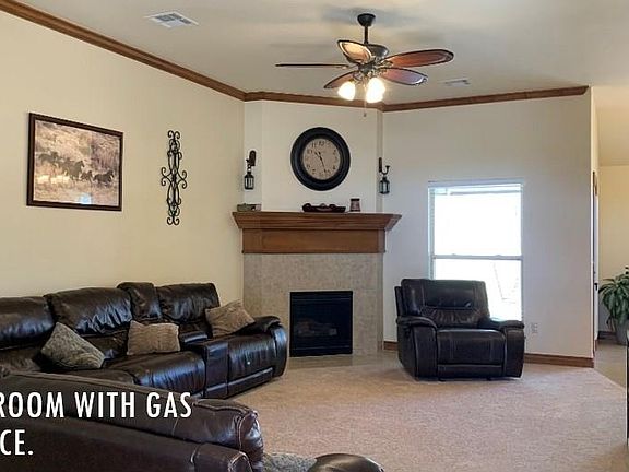 Welcome home to this beautiful 4 bed, 2 bath located in a very well kept residential area with no HOA's. Sellers are offering $3000 in closing cost along with a 1 year warranty as an added bonus. This home features an over sized master bath that includes a whirlpool jet tub with separate shower, double vanity, privacy toilet and large walk in closet. The whole house offers granite counter tops, 18" x 18" tiles, crown molding, recessed and under cabinet lighting, LED lighting, 2 vaulted ceilings, 6 smoke detectors, 6 ceiling fans (2 with remotes), stainless steel appliances, dining area, indoor laundry along with 10' ceilings in the entry, living, kitchen and master. Newer carpet installed April 2019 in the living room which boast a gas log fireplace with accent lighting. A security system with an alarm and 6 cameras comes with for your added protection. Outside offers a covered back patio with ceiling fan and a two car garage. Schedule your showing today to see your new home.