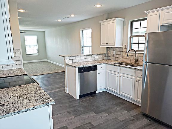 Don't miss out on the opportunity to rent this gorgeous, 1,394 square foot, 3 bedroom, 2 bath home built in 2017. There is space galore in this one! The kitchen is stocked with stainless appliances, and the kitchen bar opens into a spacious dining and living room. A spacious pantry connects to the kitchen. Beautiful granite countertops adorn the kitchen and bathrooms. The kitchen, dining room, bathrooms, and hallways display gorgeous wood look tile. Wood look blinds cover the windows. The two car rear attached garage is perfect! Home has great access to Joplin High School, numerous shopping and eating options, not to mention both hospitals and the new KCU Medical School. Don't let this one pass you by! Rents for $1,050 per month auto debited from your checking account with a $1,000 security deposit. A one year lease is required with an application submitted before viewing the property. No pets and no smoking. Available now! Application is required before viewing.com/apply/ Approximate dimensions are below: Kitchen: 11'3"-13' Dining: 13'10"-9'2" Living: 16'10"-15'4" Master bed: 12'11"-13'10" Bed 2: 11'2"-9'11" Bed 3: 10'3"-9'10" Laundry: 5'2.5" (wd) x 30" Garage: 19'-20'6" Air Filter: 20x25x1" One Year Lease Required. Application Required before viewing. No Pets and No Smoking.
