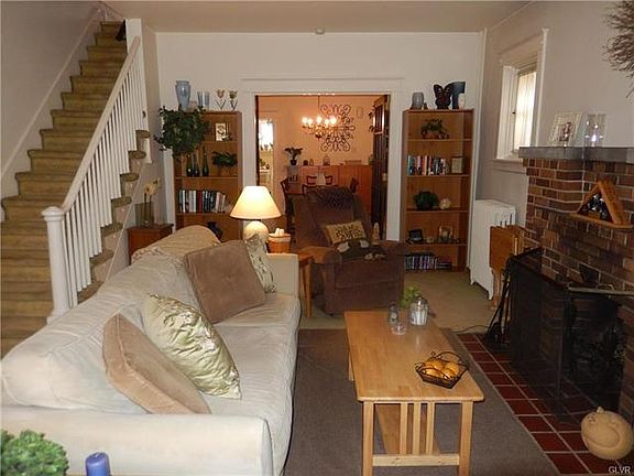 Charming Brick Twin located on a shady tree-lined street in the West End of Allentown. Three story home boasts over 1800 square feet of living space and includes a full basement plus one car detached garage. Formal living room includes wood burning fireplace and leads into dining room through French Doors. The spacious eat-in kitchen has precious breakfast nook and is fully equipped with modern appliances and accesses mud room and half bath. 3 spacious bedrooms, one which accesses balcony, and full bath complete the 2nd floor. 3rd floor has 2 finished rooms perfect for an office or possible 4th bedroom. There is tons of storage space in home of this age. The fenced-in rear yard is well cared for with lovely flowering bushes and garden beds. Enjoy relaxing on the covered front porch and entertaining in the back yard. This is one of the West End Gems.