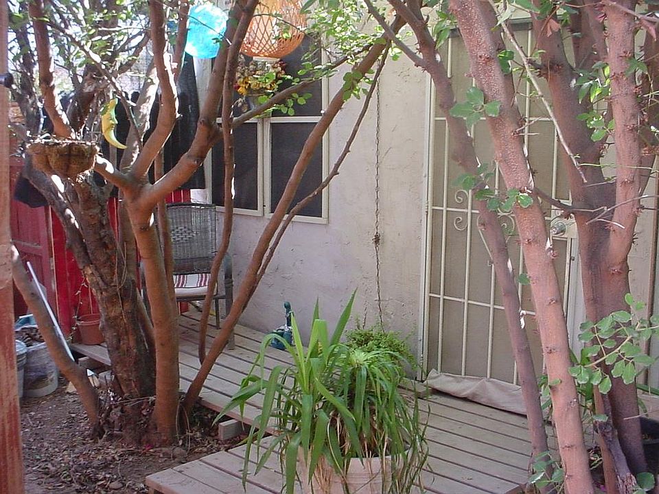 this is a true tiny home, freestanding tiny home/guest house in the rear of the grounds, is quiet and secluded tiny home, lush patios and garden area, there are outdoor cats in common area patios, therefore no dogs allowed, very small unit with a small living room, small bedroom, galley kitchen with full size ref and stove, bath, and tiny closet. cute unit, just smaller. definately looking for 1 resident only, small driveway space for 1 car only. in older bohemian style downtown neighborhood, no dogs email or text only 1 year min lease, utilities included (electric/gas/water), limited driveway parking looking for 1 person only in this tiny home