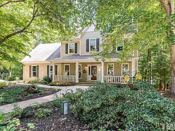 If you are a bicyclist or hiker, this is the location for you. Shenck Forest, the Greenway, and Umstead Park are at your doorstep. Beautifully maintained home with an open floorplan with 10 ft ceilings and hardwood floors. 2-car garage with side entry. Wood burning fireplace. Updated kitchen with custom cabinets, quartz countertops and gas range and cooktop, and refrigerator conveys. 2 bedrooms with sitting areas, a third bedroom, office and bonus room upstairs. Walk up floored attic. No HOA.