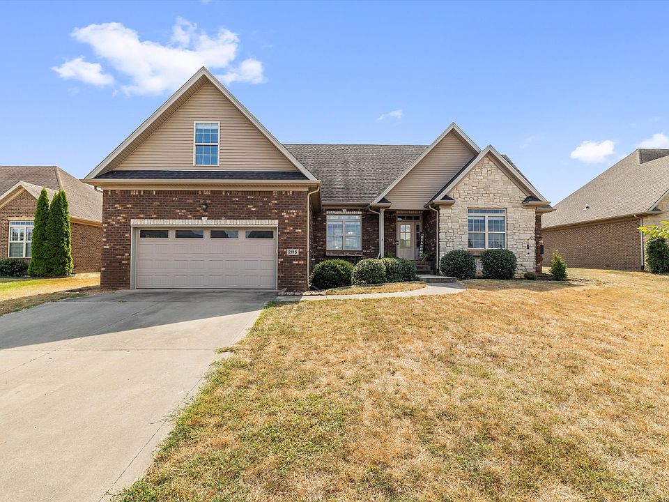 Welcome to this beautifully maintained 3-bedroom, 3-bathroom home in the heart of Bowling Green, KY. Featuring a striking brick and stone exterior with a fenced backyard, this property blends curb appeal with comfort. The covered back porch is perfect for enjoying the outdoors, while the walkable neighborhood makes it easy to stay active. Inside, you'll find a thoughtfully designed split floor plan with the primary suite privately located on one side of the home. The spacious suite offers a walk-in closet, double vanity, walk-in shower, and a relaxing soaker tub. Two additional bedrooms share a full bath on the opposite side, with an inviting open-concept living room, dining space, and eat-in kitchen at the center. Upstairs, the bonus room features its own full bathroom and access to additional attic storage. The laundry room includes custom cabinetry and is conveniently located off the attached two-car garage. Recent updates include a brand-new HVAC unit, refinished main-level floors, newer hardwood floors upstairs, updated lighting in the dining room and entryway, and fresh paint throughout. Seated on a .25-acre lot, this home is move-in ready and waiting for its new owners!