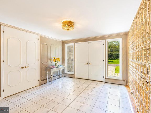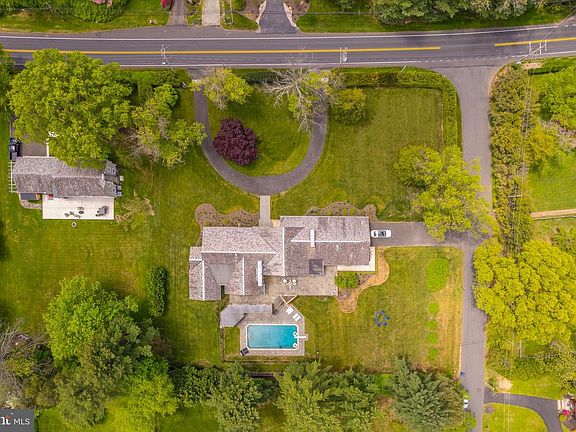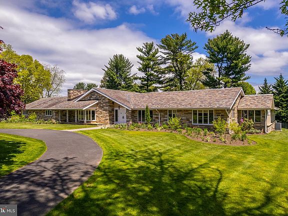 This elegant, one-of-a-kind, 5,000+ square foot home impresses the moment you pull up the welcoming circular driveway and take in the warm colors of the stone facade. You can feel the mid-century vibe and know that an exciting home is behind the double doors! Inside, you will be delighted by the abundance of windows, beautiful flooring, texture of the various stone walls, and recessed lighting, plus many more fascinating details throughout! So ahead of its time in design, this seamless single level ranch home will make everyday living, working from home, and entertaining family and friends a pleasure! The rear of the property is equally impressive with the stone veranda running almost the full length of the house overlooking a lush yard containing a 44 x 20-foot in-ground swimming pool enclosed by black wrought iron fencing with coordinating black wrought iron detail on the veranda. Enter the understated entry foyer and to the left, slightly veiled by a handsome custom wrought iron screen, is the living room, showcasing a gleaming parquet floor, a wall of windows, and a whitewashed stone wall with built-in fireplace and shelf. Imagine mingling with guests with before dinner libations in this lovely room as they anticipate a personal tour of this exquisite half-century custom-built home! Further to the left is the tastefully updated kitchen with stone accent wall displaying built-in ovens and Sub-Zero refrigerator. The stainless-steel appliance suite includes two beverage refrigerators and another oven built into the island. Rich custom cabinetry, granite counters, seating for four, built-in cabinetry with workspace, and French doors to the veranda, complete this heart of the home. Off the kitchen and living room is the dining room featuring a large bay window and exotic inlay hardwood floor with Greek Key border that is the star of this room! Adjacent to this room is the solarium with almost a full wall of windows and doors leading outdoors the perfect spot for some peace and quiet at the end of the day. Next is a comfortable, yet refined study with a wall of beautifully integrated random-stacked stone, fireplace and shelf, a wall of wrap-around custom built-in shelving, and yet another modern parquet floor! The spacious family room boasts a wall of wrap-around windows, up-lit domed ceiling, another wall of stone with a fireplace, bamboo floors, and provides endless possibilities for accommodating family activities, such as card games, movies, or billiards, as well as space for more personal conversation. All four generous bedrooms are in the right wing of the house including the owners suite at the rear of the home, as preferred in this mid-century style property, where you can once again appreciate the outdoors from inside via the back wall of windows and doors.The owners suite features an entry foyer leading to a 13 x 6-foot walk-in closet with California closet organizers, a huge ensuite bath with marble tile, heated floors and his & hers floating vanities, and bedroom with raised ceiling, recessed lighting, and basket weave hardwood floors. The guest room in this wing also contains its own renovated ensuite bath and walk-in closet. Enjoy small intimate parties or entertain large gatherings of friends, family, and business associates on this 1.4-acre oasis. All will genuinely appreciate the clean lines of this streamlined modern showpiece in the heart of Yardley just a short trip from New York, Philadelphia, Princeton, and New Hope. Additional features include gorgeous landscaping across a beautifully manicured lawn, a side-entry 2-car garage with driveway, newly installed gas service, 8-zone heating, 2-zone air conditioning, and a brand-new ADT security and surveillance system. This architectural beauty is being debuted just in time for the summer season!