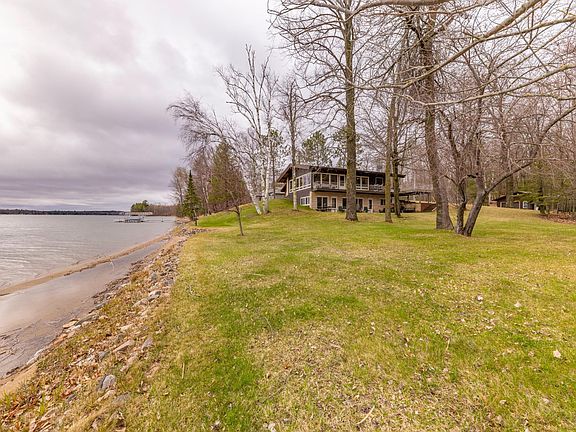 Welcome to Pokegama Lake! This stunning property offers captivating lake views from the great room, where every glance out the expansive windows evokes a sense of serenity & sets the stage for unforgettable moments. The gradual elevation of the property not only provides breathtaking scenery but also ensures easy access to the pristine sandy lakeshore, allowing you to fully embrace the tranquility of lake life. Inside, the home boasts an inviting atmosphere with an open layout that seamlessly connects the living spaces. The well-appointed kitchen features modern appliances and ample counter space for meal preparation. Adjacent to the kitchen, the dining area offers panoramic views of the lake, creating the perfect backdrop for memorable meals shared with family and friends. The island views will captivate you, adding to the allure of this lakeside retreat. Close proximity to championship golf and restaurants at Sugar Lake Lodge, and just a short boat ride from Pokegama Golf Club.
