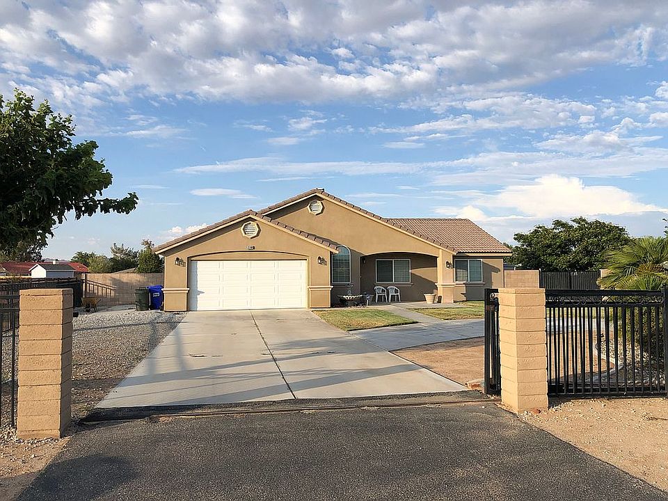 The home has 1520 square feet and is a 3 bedroom 2 bath. The living room has lots of natural light and is very cozy. The kitchen and dining area are convenient for those back yard barbecue's and get togethers, The bathrooms both have tub and shower. The curb appeal is delightful block and wrought iron gates enclose this beautiful home. Palm trees and a beautiful horse shoe driveway and green lawn. They have a small patio out front for those gorgeous evenings . The back yard also sports a RV area, and a shed for storage. You don't want to miss this home. Its a Must See!!!