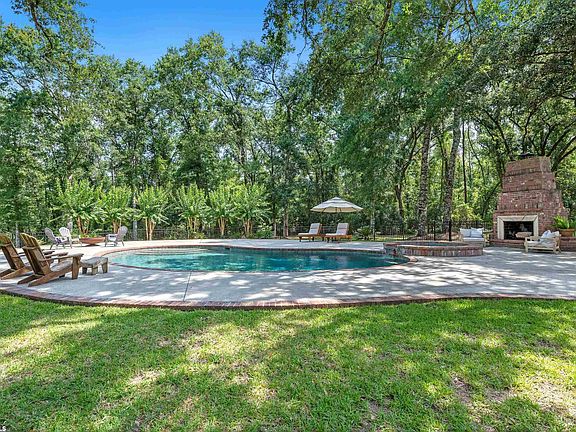 Stunning home on approximately 20 acres in Fairhope. This home has 5 bedrooms and 4 ½ baths, a separate spacious dining room and a large office. It also has a sewing/craft room - an organizers dream. In addition to those extra spaces, there is a large bonus room with a kitchenette that opens onto the pool area. Tons of versatile space and an incredible amount of storage! Closets galore. All bedrooms have walk-in closets with custom shelving. Imagine entertaining guests in your gourmet kitchen featuring: a wet bar with an ice machine, built in Monogram refrigerator, 6 burner Thermador gas cooktop, double ovens, beverage station with a wine/beverage cooler, large island, and cabinets topped with marble countertops. Australian Cypress wood flooring and plantation shutters embrace most windows. Roof replaced in 2020. Amazing outdoor space. Walk outside…sit by the fireplace and enjoy a tranquil salt water gunite pool and spa. Also included is a +-1,000 sq ft barn/storage building and a 2-car carport with a large storage room. Truly a hidden jewel.