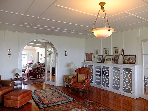 Panoramic views. Located in the bucollic hamlet of Orient Village this 5000sq ft Historic Beaux Arts Colonial is set upon an estate like 1.3 acres Overlooking Orient Harbor, Latham Farms and beyond. This 7 bedroom, 6.5 bath has 4 working fireplaces, High ceilings throughout; great room, parlor, formal dining room, sun room, with walls of windows overlooking farm views and the bay. High ceilings thru out. Unmatched original details intact. 2 separate 2 bedroom 1 bth Guest quarters. Stunning gardens, specimen trees and plantings. Too much too list, an incredible orient value. a must see.Exclusive.