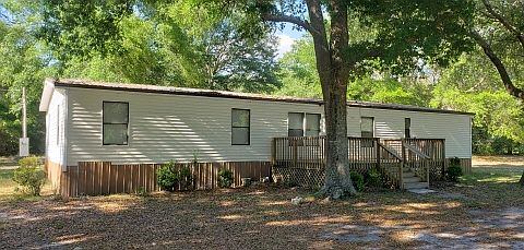 Large DWMH on over 10 acres between Dowling Park and Live Oak. This property in secluded but also has a very open and spacious yard. It has a large front deck that is mostly shaded by an oak tree with a covered/screened rear porch.