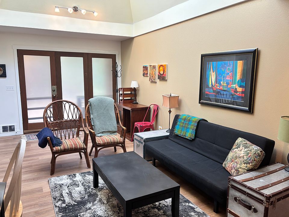 Freshly painted one bedroom cottage, new flooring, open floor plan, private patio, laundry in unit, off street parking. Quiet, established neighborhood near amenities such as post office, coffee shop, market. bus stop on corner. This property is offered furnished.