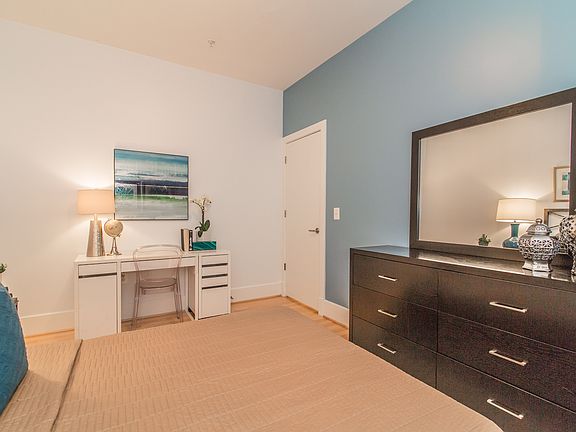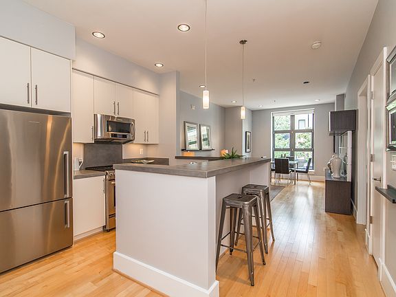 Bright and open 2-BR condo with high ceilings, hardwood floors and great natural light. Kitchen has SS appliances, gas cooking, built-in microwave and a breakfast bar. Spacious living room has separate dining area with floor-to-ceiling windows. Master BR has beautiful windows with up and down shades and lots of closet space. Second BR (no window) has built-in closet added by owners which aren't reflected in photos. Living room built-ins in photos have been removed for more wall space. New Samsung W/D (Dec. 2019) also not reflected in photos. Available July 1st. Storage space, approx. 85 SF available for $75 extra. Just 1 block to upcoming Whole Foods and 2 blocks to U Street Metro. Gas and water included in rent.