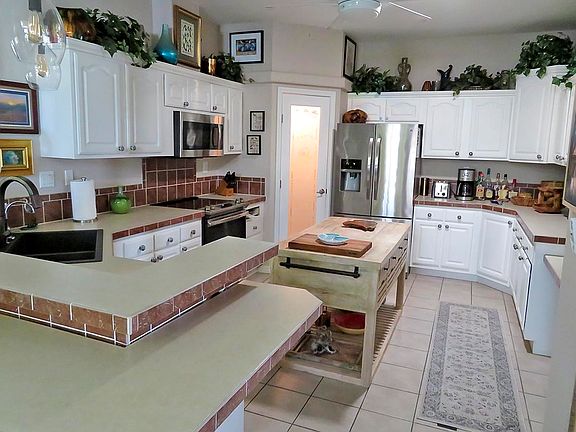 This spectacularly FURNISHED executive home has open kitchen - dining - living space, just perfect for the Florida lifestyle! TWO Bedrooms, TWO Bath, and Den/Office/Man Cave or Craft Room, plus the open room on the back of the home overlooking tranquil waters. Large kitchen with lots of white cupboards is ready to test your culinary skills. HVAC IN 2019. HURRICANE SHUTTERS. Large GARAGE (24x24) with lots of storage and separate laundry room. A rare find, this size home doesn't come available every day, don't delay.
