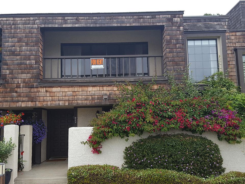 Bi-level townhouse style condo. Master bedroom + 2nd bedroom downstairs. Kitchen, living room and dining area upstairs. Upper level has ocean view + balcony. 2 car garage. Owner pays water and sewer, tenant responsible for gas & electric.