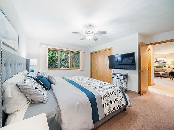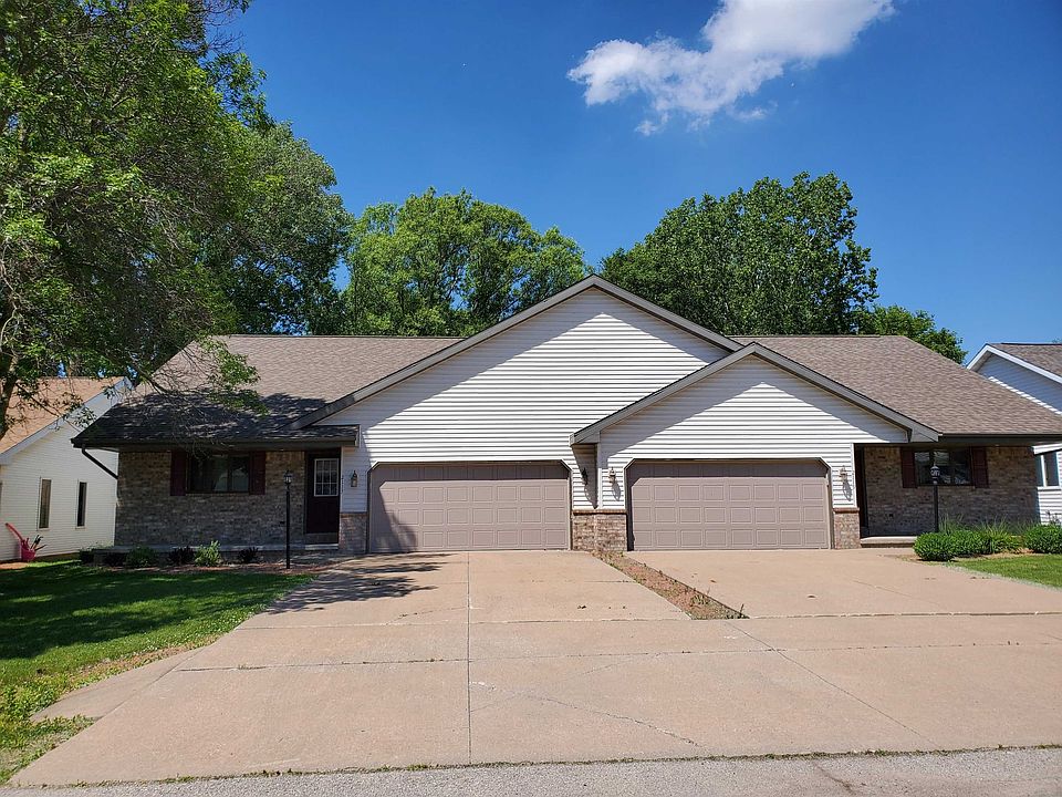 Dual-sided quad-level duplex at 2117 & 2119 Cloudview Ct. on Appleton’s northeast side near Fox Valley Tech with convenient access to shopping, dining, and Hwy 41. Each side features 3 bedrooms, 2 full baths, a cathedral ceiling, central air, an attached 2-car garage, and a deck with a yard adjoining a walking trail. The upper level includes a bedroom, a full bath, a living room with a gas fireplace, and patio doors to the deck. The entry level has a dining area and kitchen with appliances. The lower level has 2 bedrooms and a full bath. The basement includes laundry hookups and storage space.