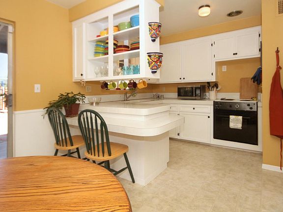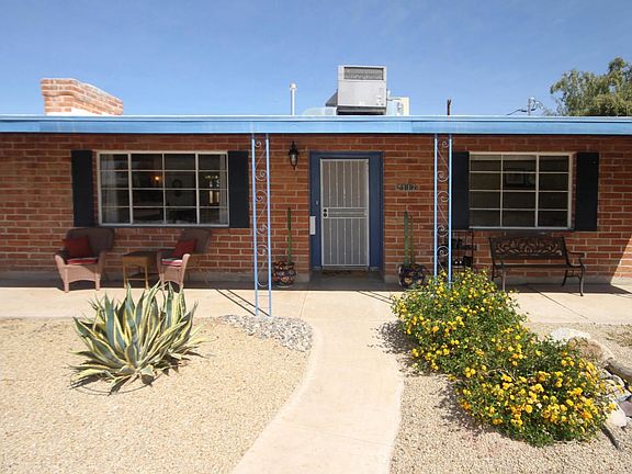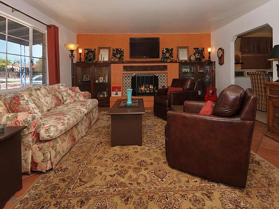 Exquisite & charming interior--remodeled, 2br/2ba with great character--Talavera, great fixtures; carved, wood mantle over the fireplace flanked by glass door bookcases--great look! Unique, original, retro, tiered kitchen bar/counter. Mtn. view from the covered rear patio. Additional yard & approximately 15'x20' slab beyond rear wall (for parking/basketball court?). Great location just south of the U of A.
