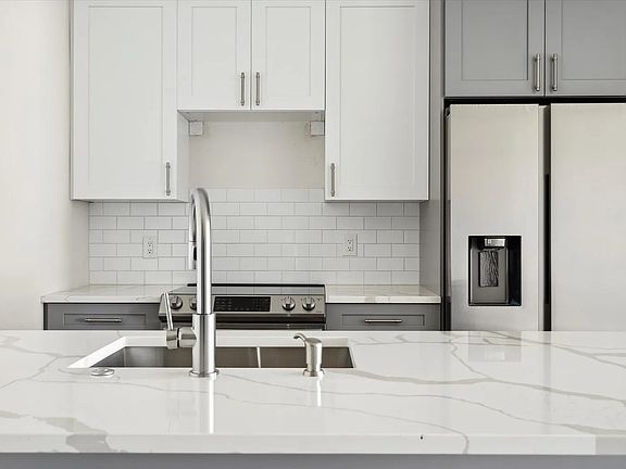 The kitchen is truly the heart of the home, featuring eye-catching two-tone cabinetry (crisp white uppers and soft gray lowers), sleek silver hardware, and gleaming stainless steel appliances. Whether you're a home chef or a takeout pro, you'll love the spacious countertops, subway tile backsplash, and high-arc faucet. The island or breakfast bar adds the perfect spot for morning coffee, casual meals, or catching up with friends.