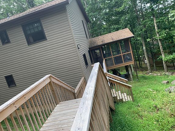 • ExteriorFeatures: Deck, Porch - Screened, T-1-11, Wood Siding