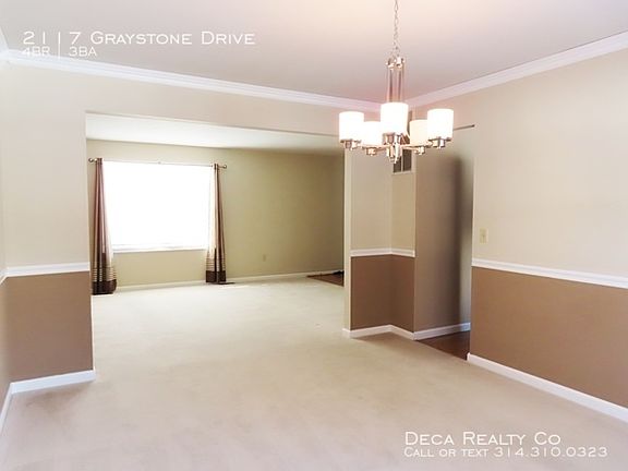 SCHEDULE A SHOWING ONLINE AT: showmojo.com/lh/f2b22230c6 MOVE-IN Special: 1st Month Free w/ 18 Month Lease ($1,925 to Move-In!) Call Jack at 314-446-0853 to schedule a showing! 4 Bed - 2.5 Bath house rental in St. Charles County! This 2 story house provides all the space you could ever need! With 2,312 sq. ft. of living space and 9 total rooms this will not last long! Take in the beautiful hardwoods that surround the kitchen. The kitchen has a breakfast bar that seats 4 people. Kitchen comes fully equipped with an electric stove, refrigerator, microwave, garbage disposal and dishwasher! Main floor also has a formal living space, dining room, mudroom with w/d included and a family room. Family room comes equipped with a projector screen to create the perfect movie night! Upstairs you will find 4 bedrooms, a hall full bath with double sinks. Spoil yourself in the master suite with a huge walk-in closet and a full bath with a separate shower and tub! Basement is unfinished with carpet flooring and provides plenty of storage space. 2 Car garage for convenient parking this winter. Backyard is completely fenced in with a large patio for all your entertaining needs. 18 month lease allows for you to move-in with just a security deposit! MOVE-IN Special: 1st Month Free w/ 18 Month Lease ($1,925 to Move-In!) VISIT US AT WWW.DECAREALTY.COM TO VIEW ALL OF OUR AVAILABLE RENTAL PROPERTIES! Bedrooms: 4 Bathrooms: 2.5 Rooms: 9 SQ. FT.: 2,312 Flooring: Hardwood & Carpet Utilities: Electric, Gas, Water, Trash, Sewer & Lawn Care Basement: Unfinished (Storage) Pets: Negotiable - $300 Pet Fee w/ $25 Monthly Pet Rent School District: Francis Application Fee: $35 per adult applicant Disclosure: This property may require a municipal inspection which may affect when it is available for move-in VISIT US AT WWW.DECAREALTY.COM TO VIEW ALL OF OUR AVAILABLE RENTAL PROPERTIES! Helpful Resources (copy and paste links into browser) Rental Criteria: Application: Carpet Flooring Disposal Fenced Garage Gas Forced Heat Off Street Parking Pets Negotiabale Storage Stove Unfinished Basement Washer/Dryer Hook Ups Wood Flooring
