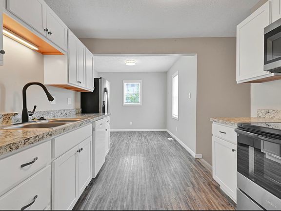 Every detail of this beautifully remodeled 3-bedroom, 1-bath home has been thoughtfully updated to offer both comfort and style across its 904 square feet. From the moment you arrive, the fresh gray vinyl siding with black shutters and gutters sets a sleek, modern tone, complemented by brand-new landscaping that adds inviting curb appeal. Inside, you'll find a completely updated interior. The kitchen features new cabinetry, all-new appliances, and modern finishes that make everyday living easy and stylish. The bathroom has also been fully renovated, including a brand new tub, toilet, sink, faucets, and fixtures—no detail has been overlooked. Throughout the home, new flooring ties everything together with a clean and cohesive feel. Major updates offer peace of mind for years to come, including a brand new roof, windows, updated electrical panel, new furnace, and water heater. The dry basement adds valuable extra space, ideal for storage or future finishing. Outside, a spacious, freshly graveled driveway offers ample parking, and the large backyard—already seeded for new grass—provides a blank canvas for your vision, whether that’s adding a garage, building a patio, or simply enjoying open green space. Perfect for first-time buyers, downsizers, or investors, this move-in-ready home combines charm, function, and lasting value.
