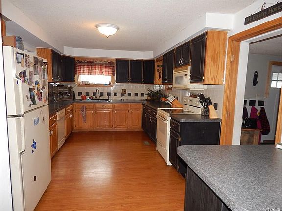 Warm, cozy, spacious home. Ready for its new owner to enjoy. 1st floor offers beautiful hardwood floors, kitchen, dining room, living room, 1/2 bath, full bath, bedroom and mud/laundry room. 2nd floor has 4 more bedrooms and 1 bath. 1,784 sq. ft. attached garage with woodstove and stamped concrete, perfect for get-togethers or hobbies. Also fits 2 cars. Outside features covered porch, gazebo, shed, 2 car detached garage and 32x16 in ground pool. Many updates, Don't wait!